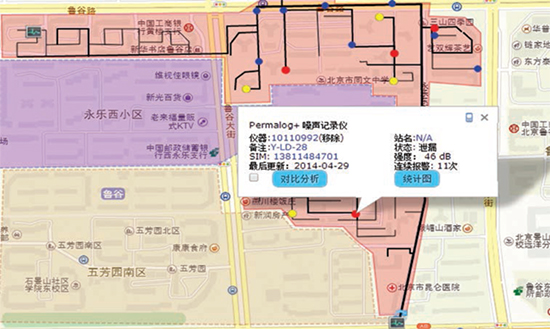 漏损噪声监测是通过传统声学原理,将人工探听漏失点的技术进行了改进,用终端噪声监测设备替代人工听漏,将噪声以数据的形式展现,通过对噪声值和噪声频率的比对分析,找到疑似漏失存在的区域。这种技术作为大规模快速部署进行漏损普查的方式使用,提高了漏损普查效率。